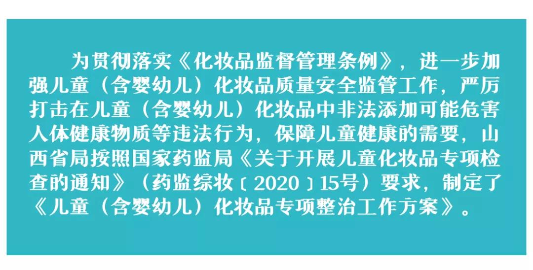 山西省药监局出台《儿童(含婴幼儿)化妆品专项整治工作方案》